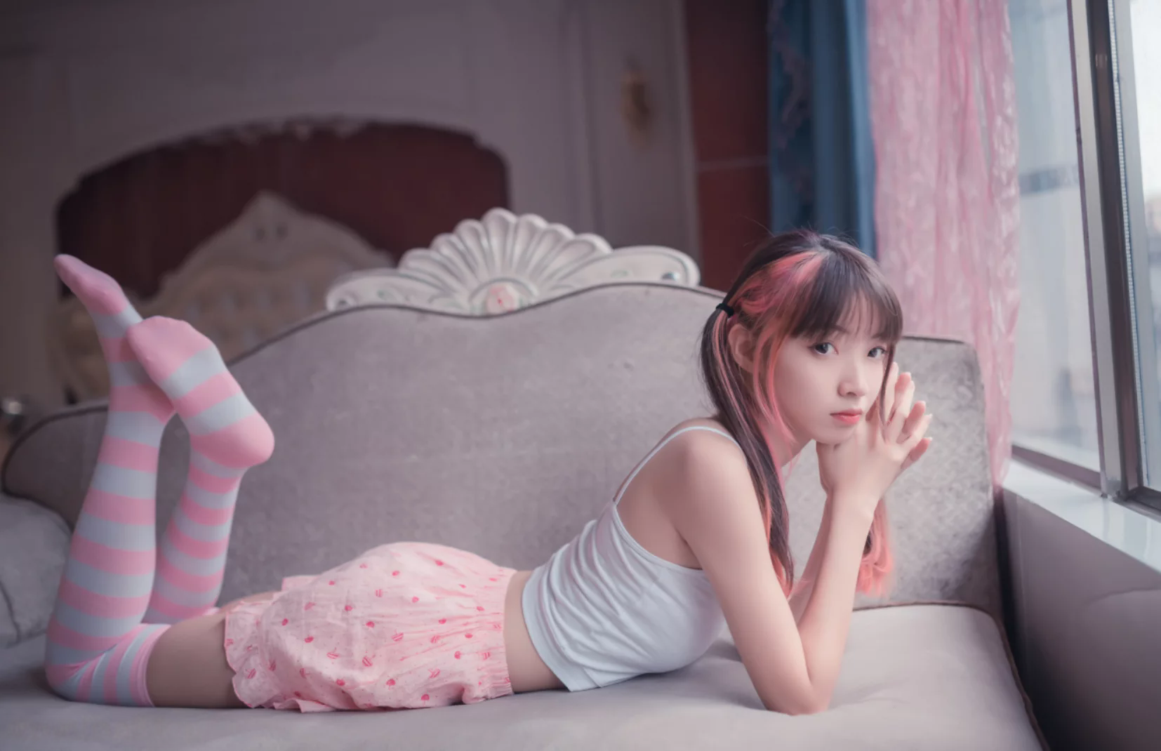 小元我呢,看过不少COSER的作品,有的是走酷炫风,有的是走唯美风,但祖木子这组“粉白条纹小可爱”,给我的感觉,是一种恰到好处的“刚刚好”。她不是那种刻意去扮嫩,也不是那种用力过猛的x感。她就像是夏日午后,透过窗帘洒进来的那束阳光,温暖却不刺眼,明亮却不灼热。